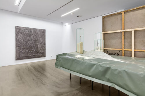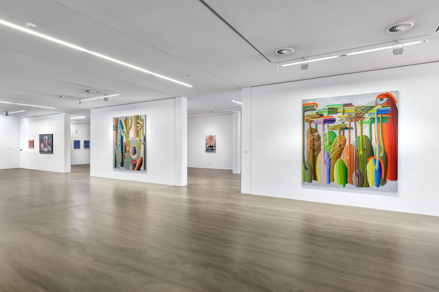 Lorenzo Pompas Gemälde und Skulpturen eröffnen auf ihre Weise imaginäre Bühnen an der Schwelle zum Unbekannten. Skurrile kakteenartige Figuren beleben die Szenerien. Sie sind zueinander gewandt, ihr Verhältnis bleibt jedoch rätselhaft.